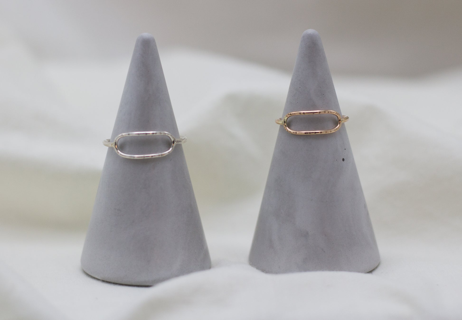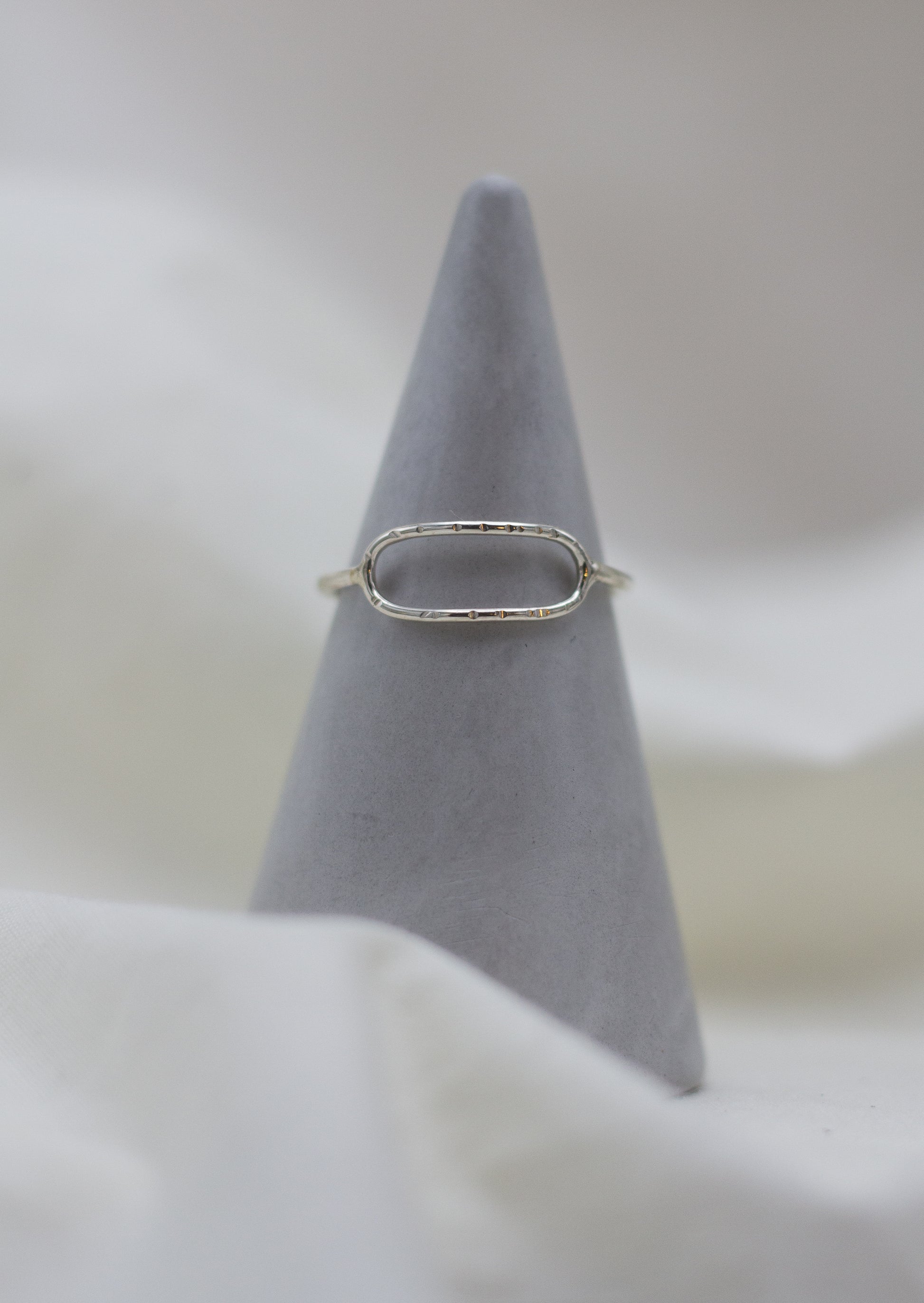 this handmade ring features a single paperclip link studs with "birch bark" texture, set horizontally to add some unique flavor to your daily ring lineup!