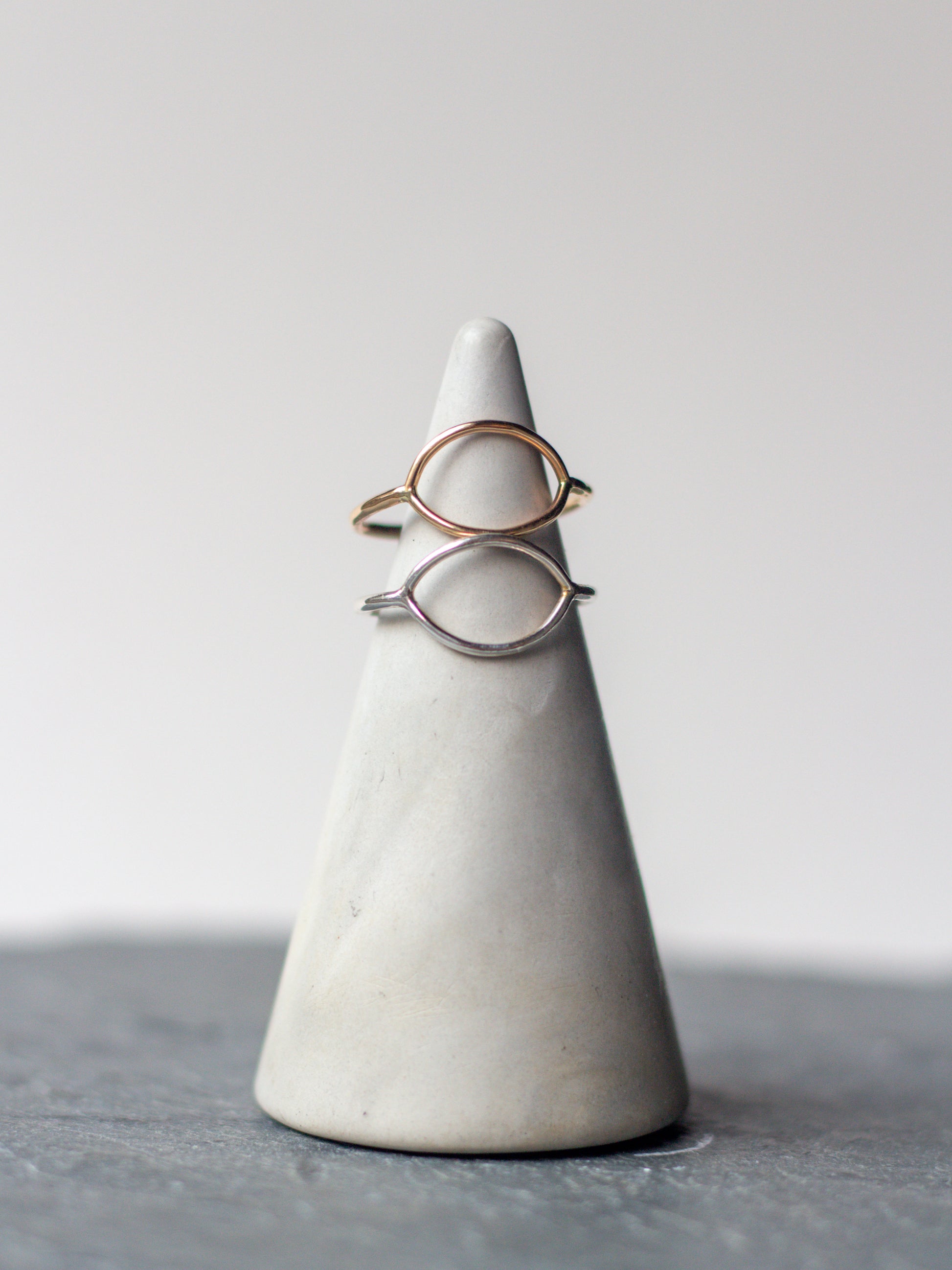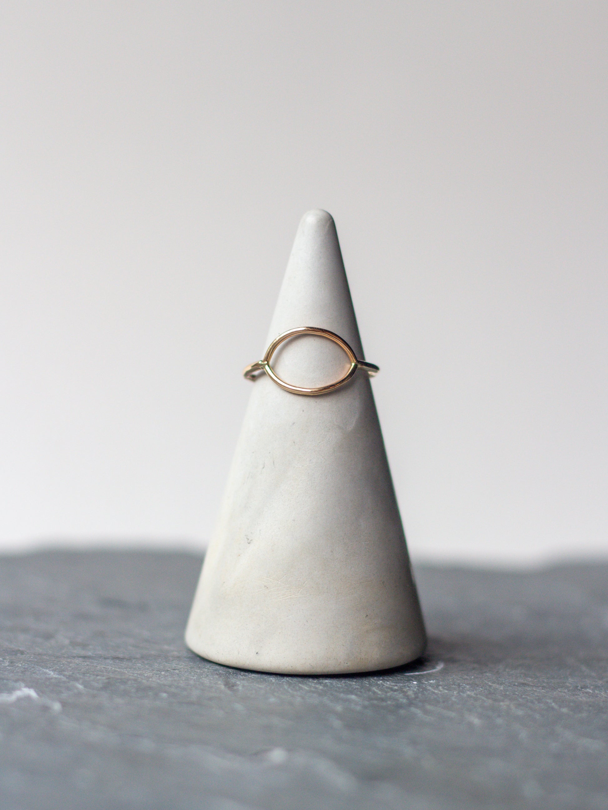 the simple eye shape paired with a skinny ring band serves as a daily reminder to see clearly + trust your inner knowing.