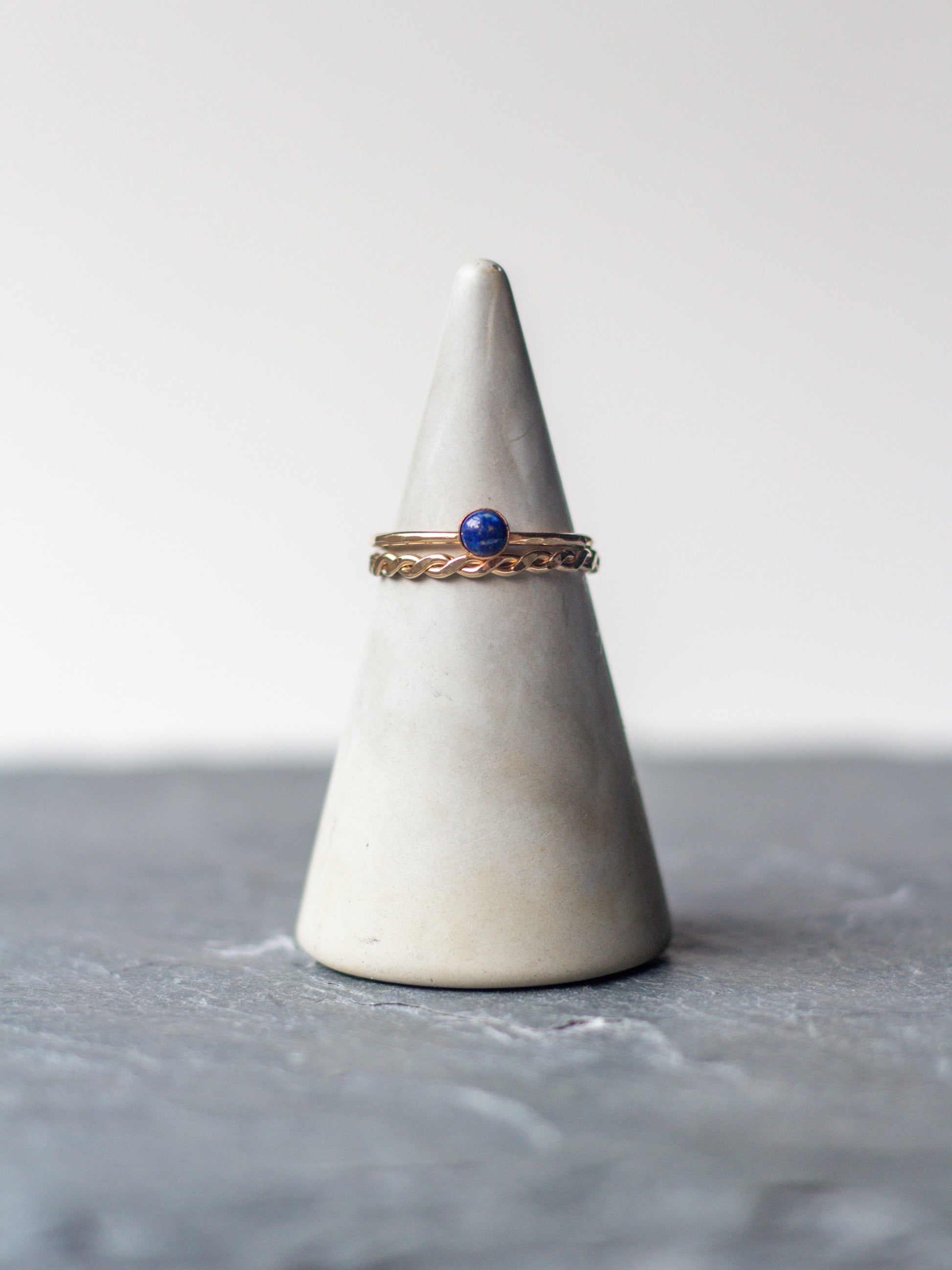 4mm gemstone set on a dainty band paired with a twist stacker ring
