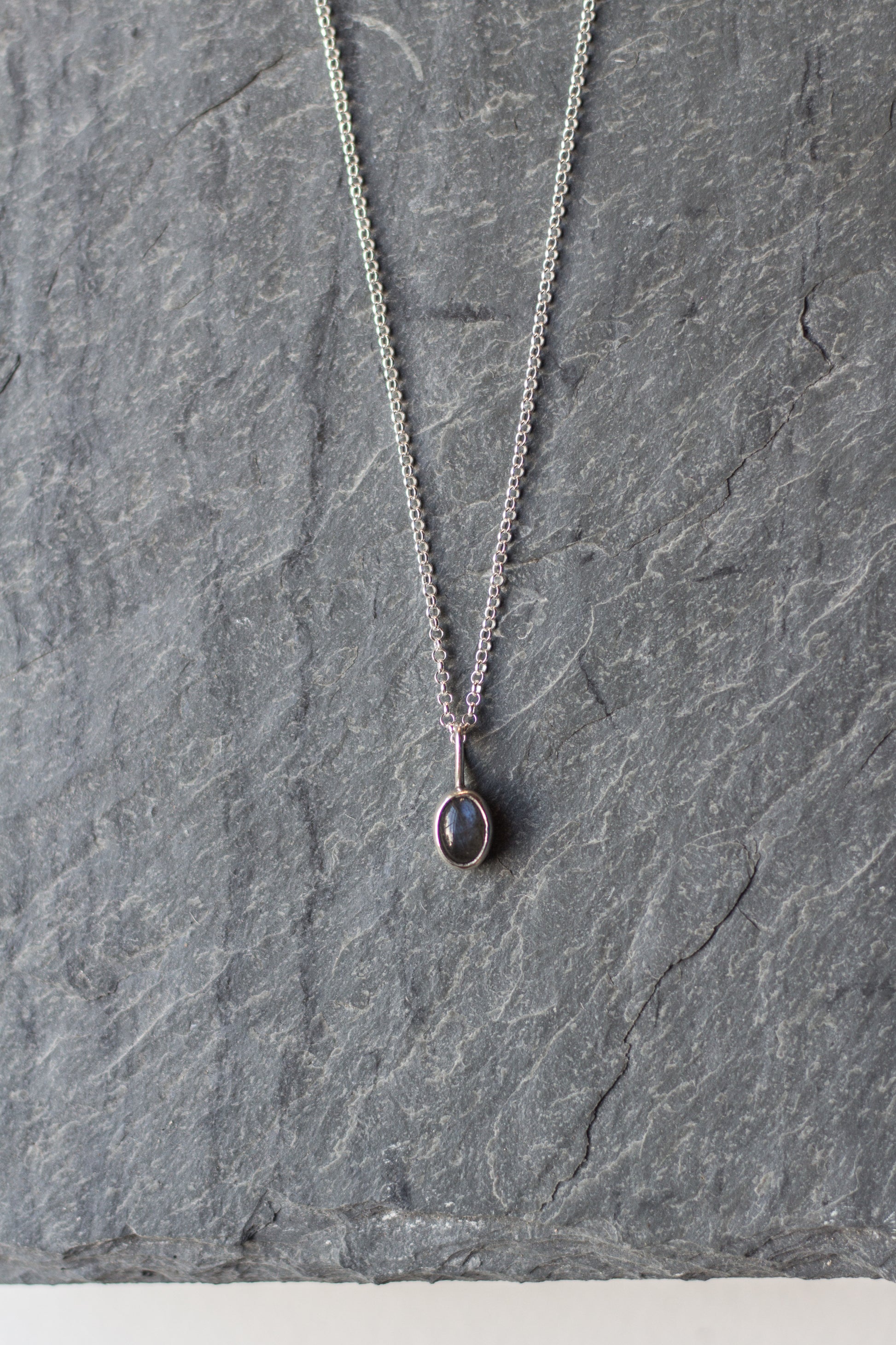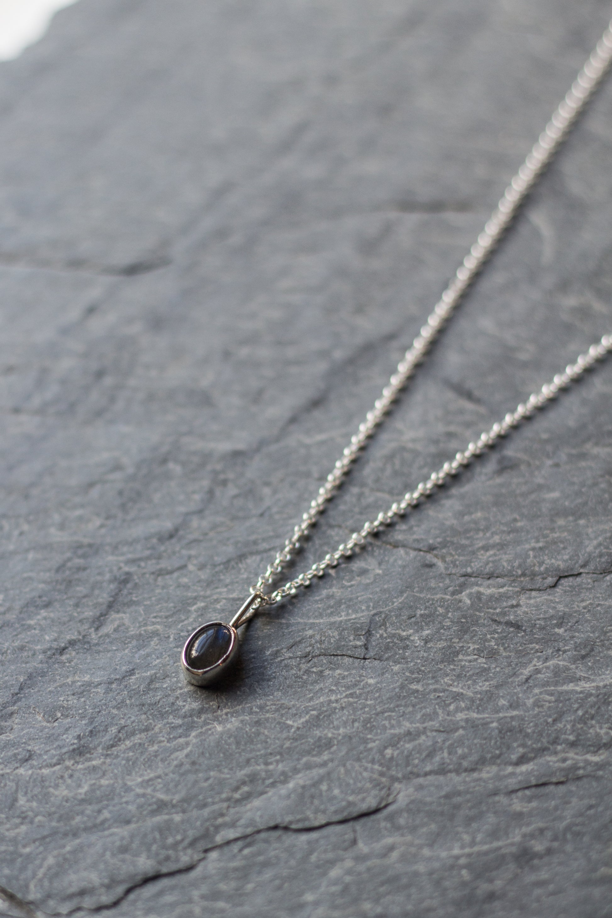 golden hills turquoise set horizontally in a hand-built bezel, made with sterling silver + dangling on a sterling silver chain (adjustable between 16, 18 and 20 inches)