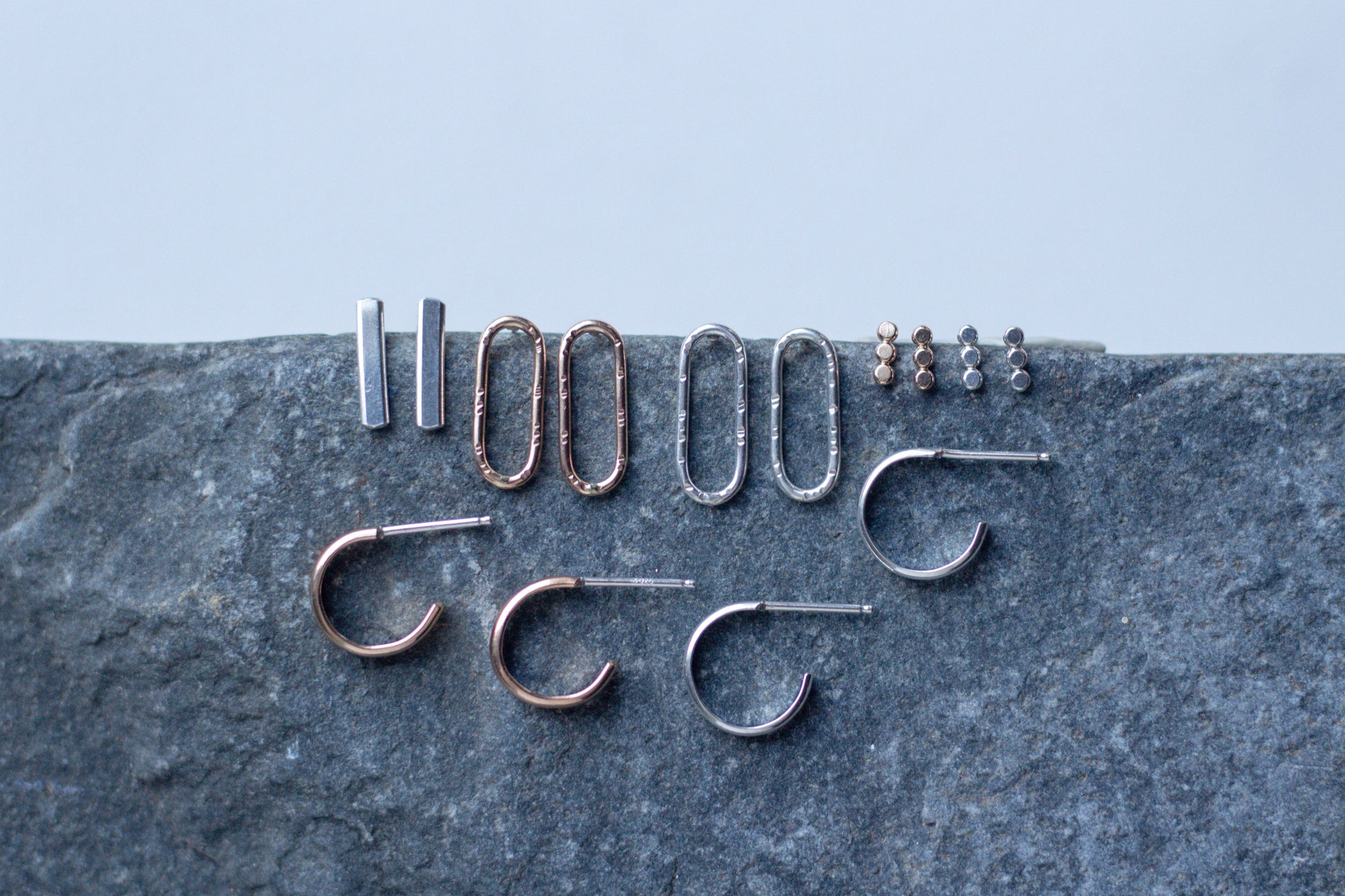 pictured: some of JR's bestseller studs (birch link studs, trio studs, bar studs, mini hoops)