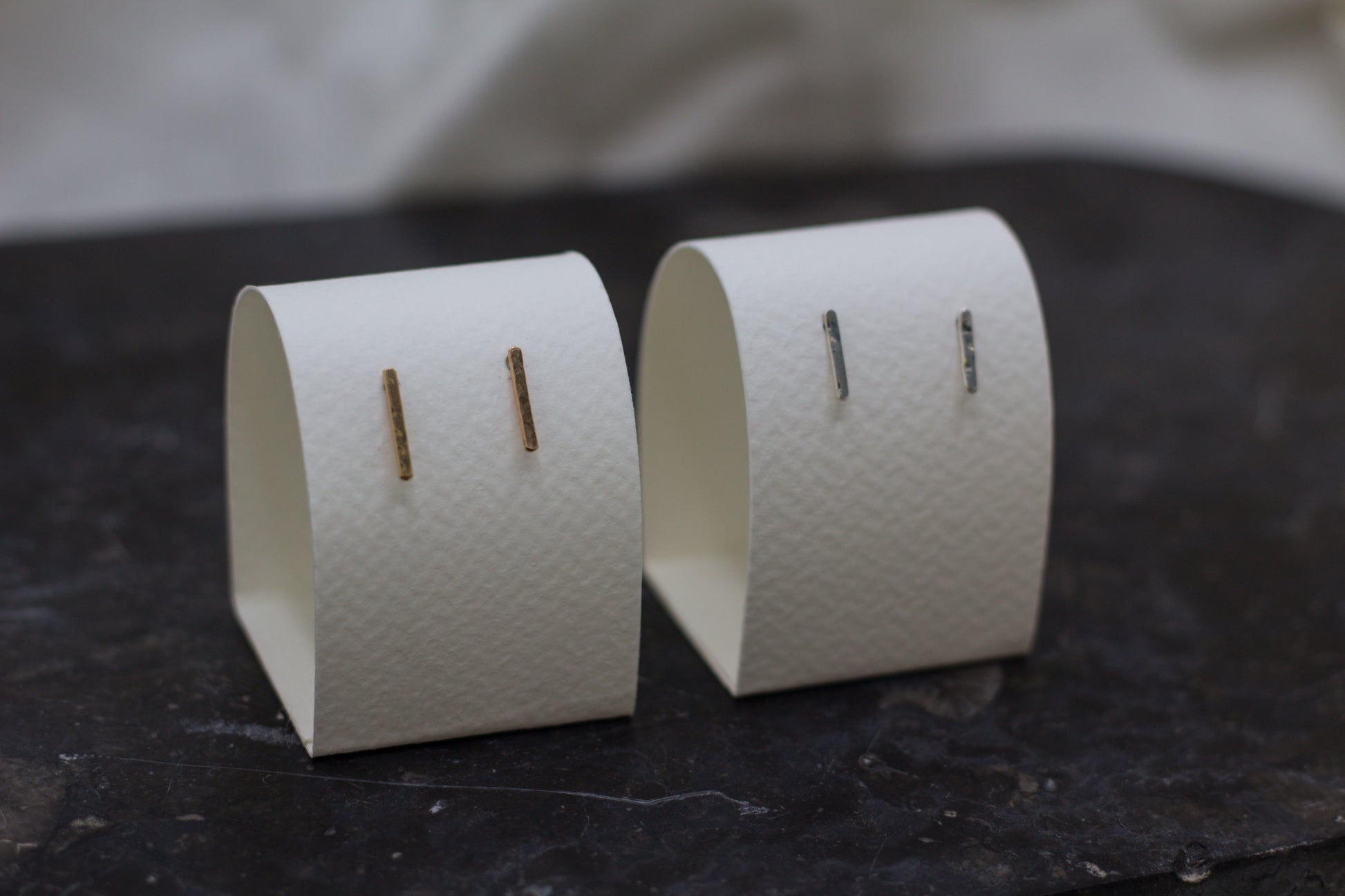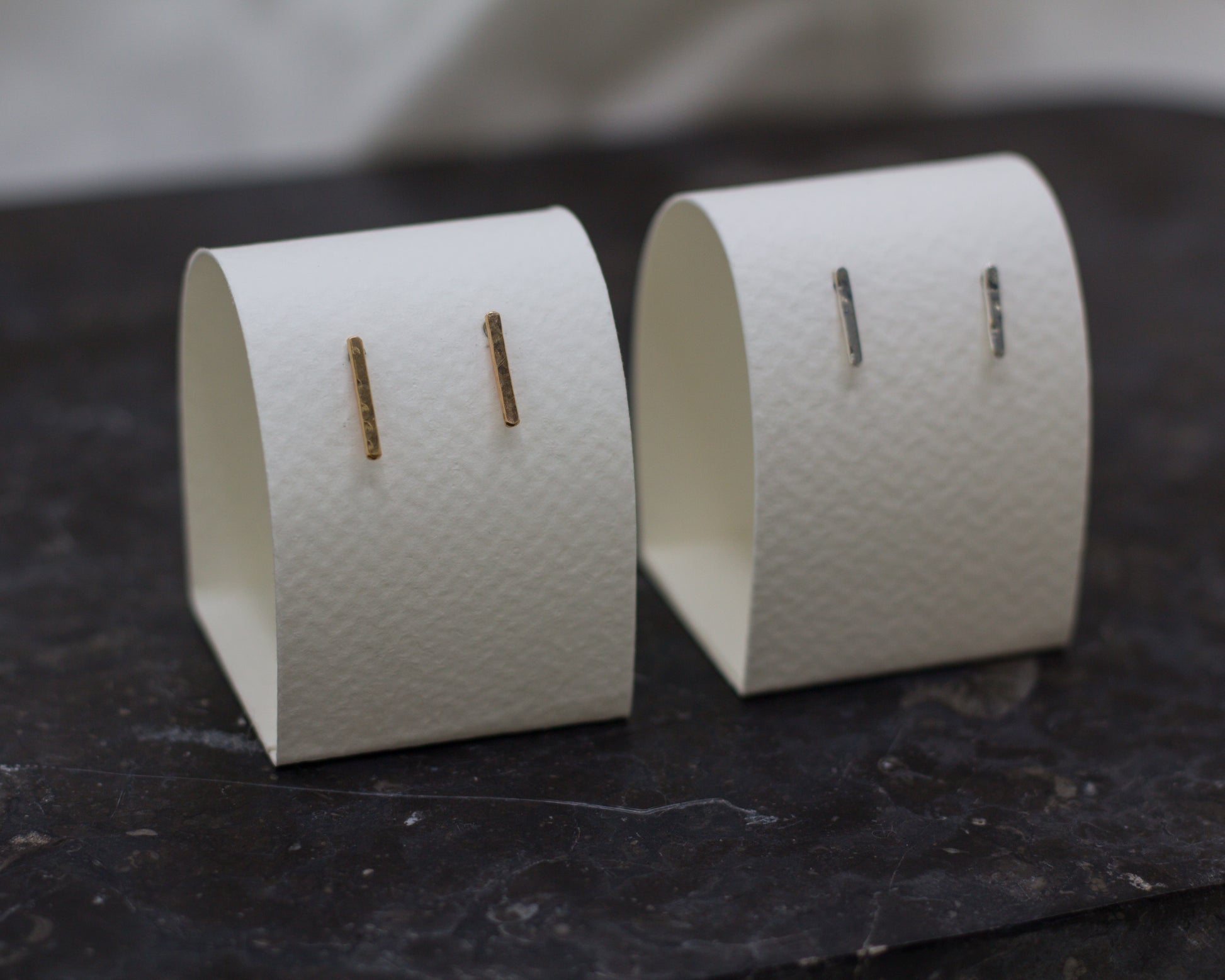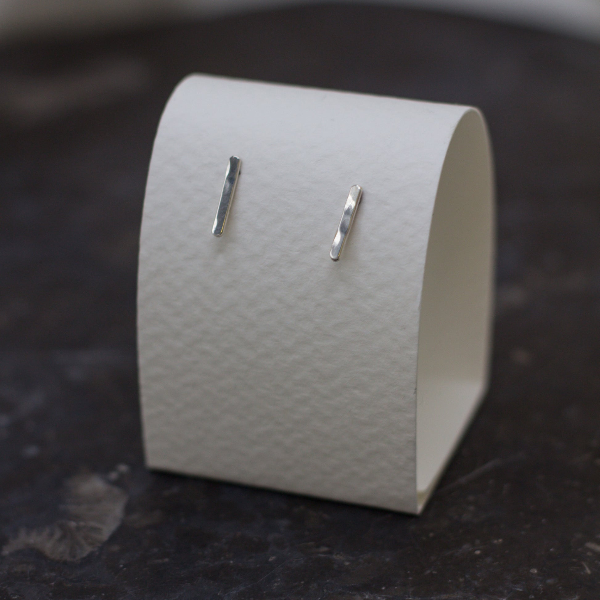 bar studs feature a slightly hammered texture to reflect extra sparkle!