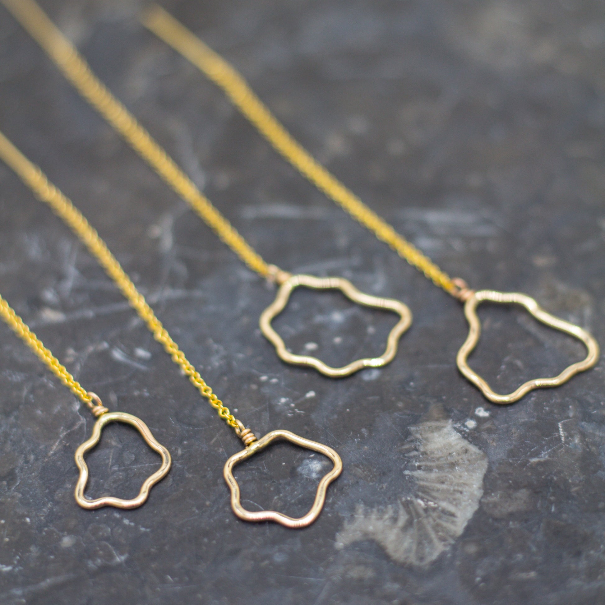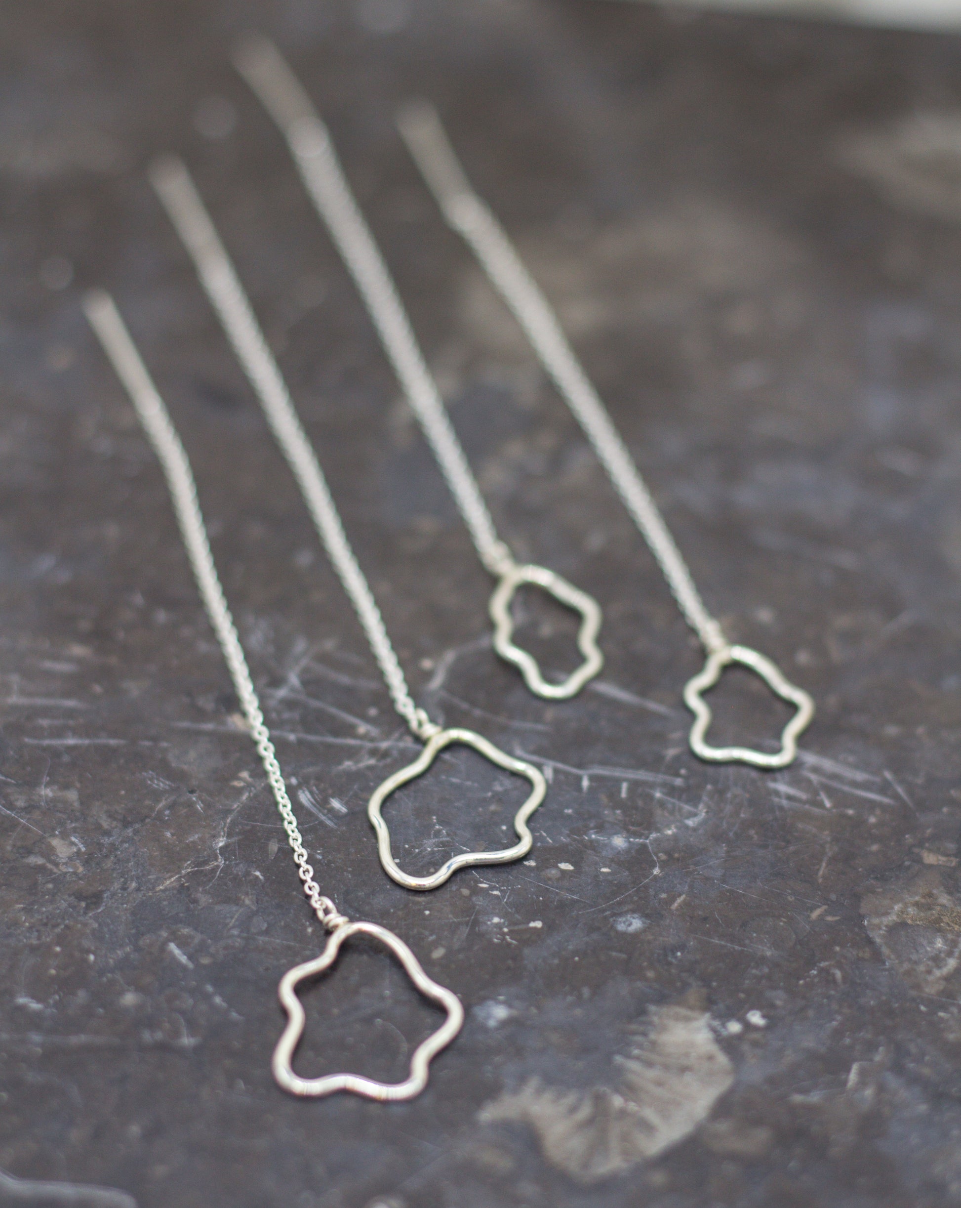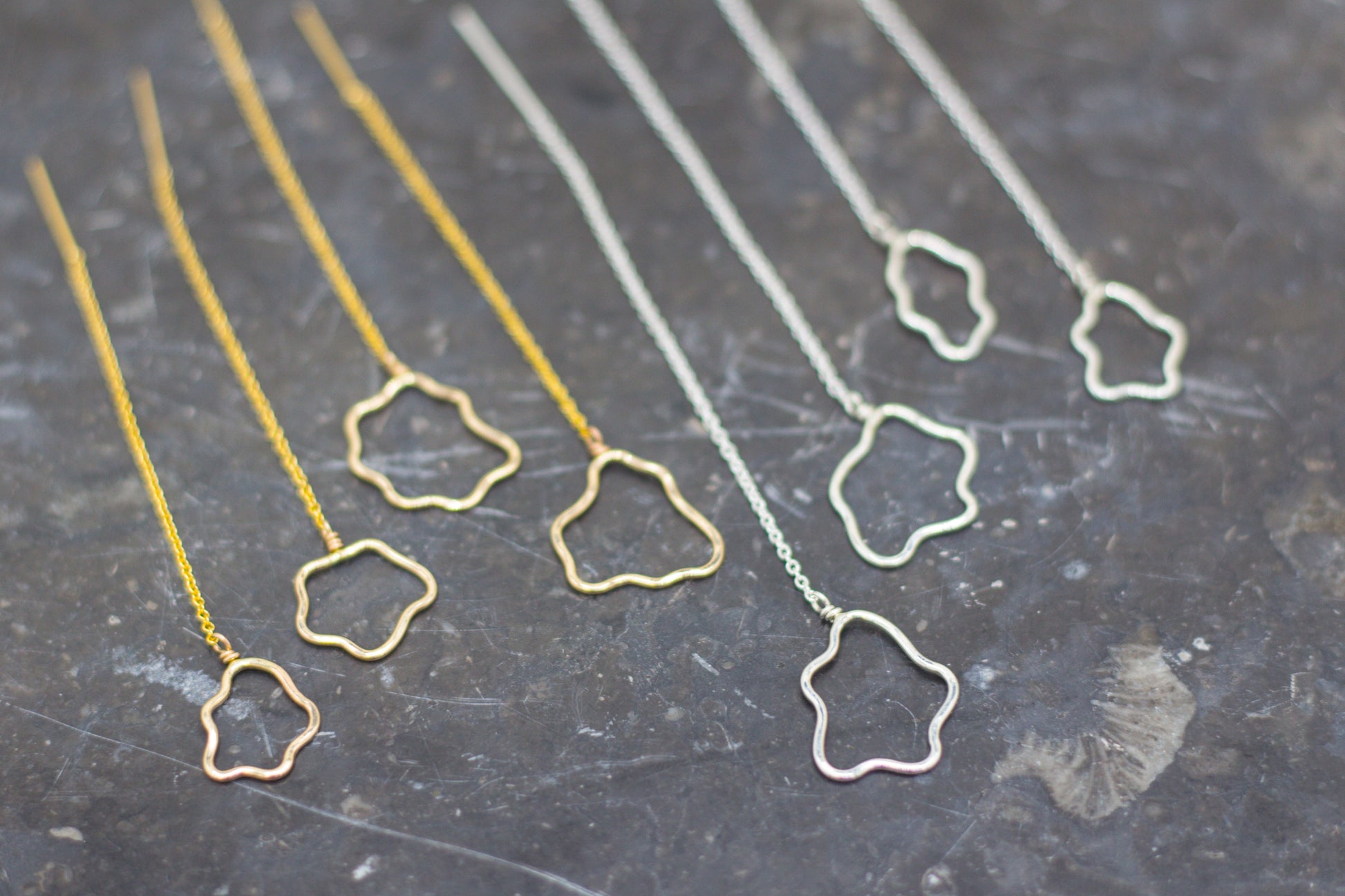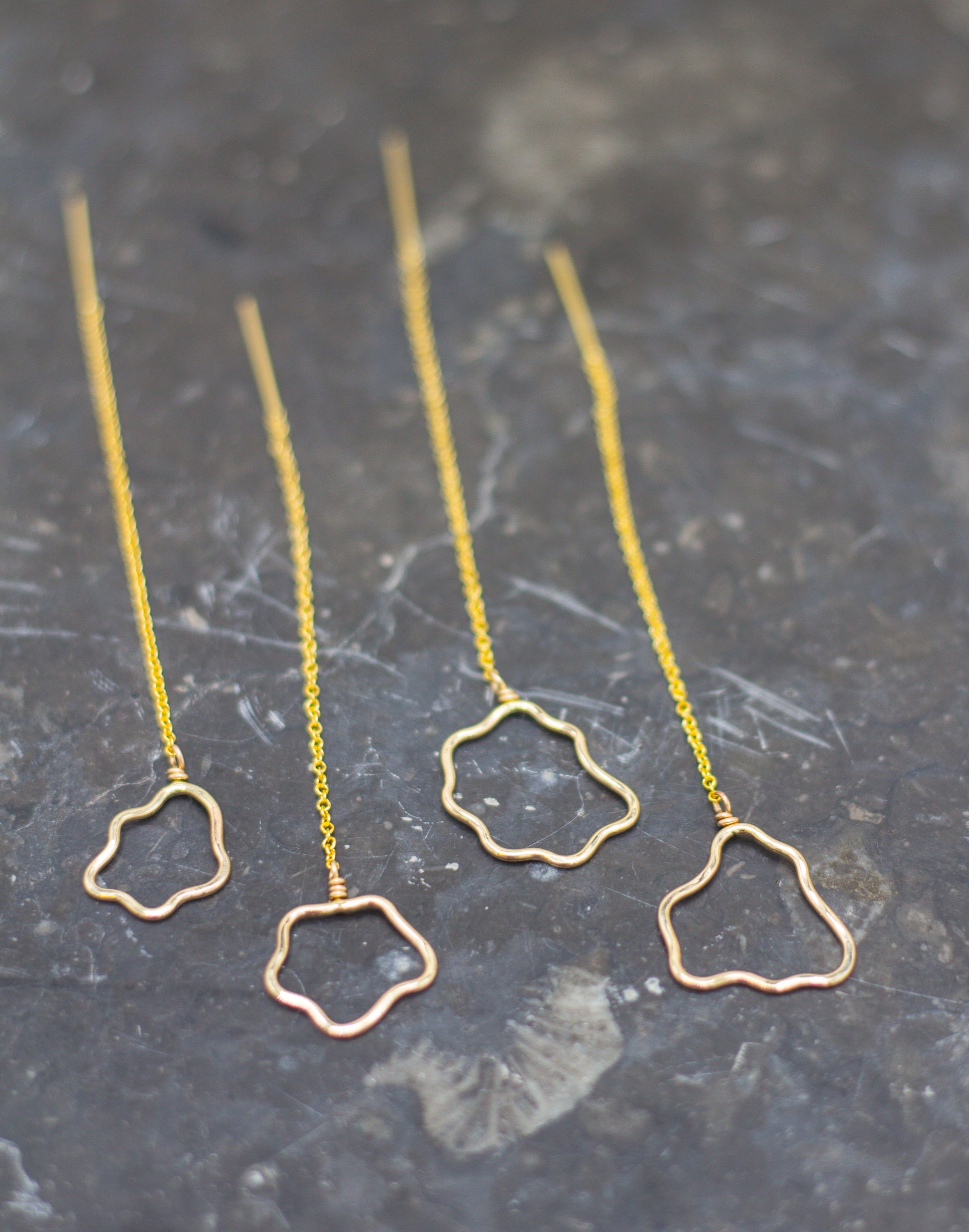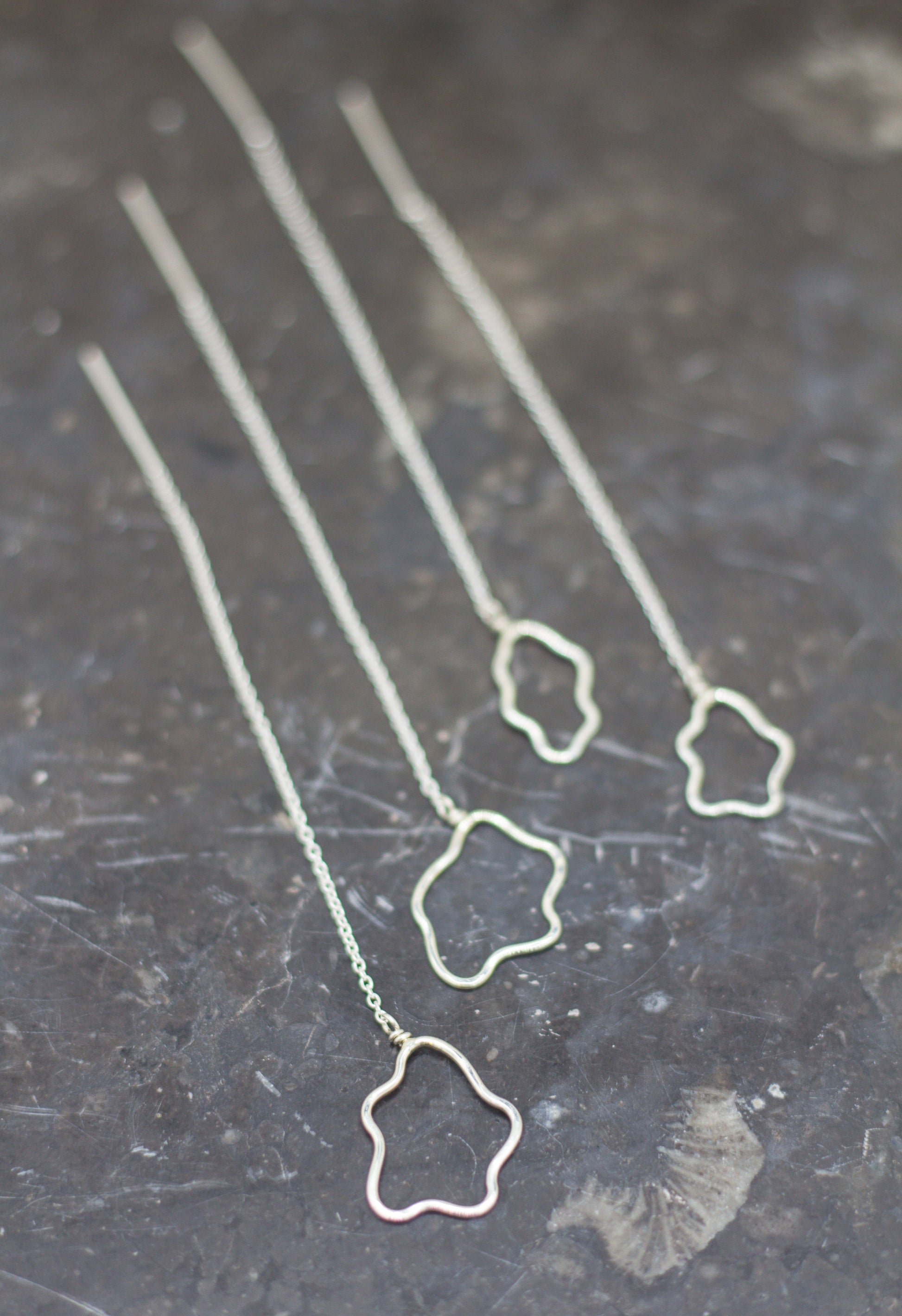 an organic 'tide pool' shape dangles off a chain + post threader style, available in sterling silver or 14k gold fill